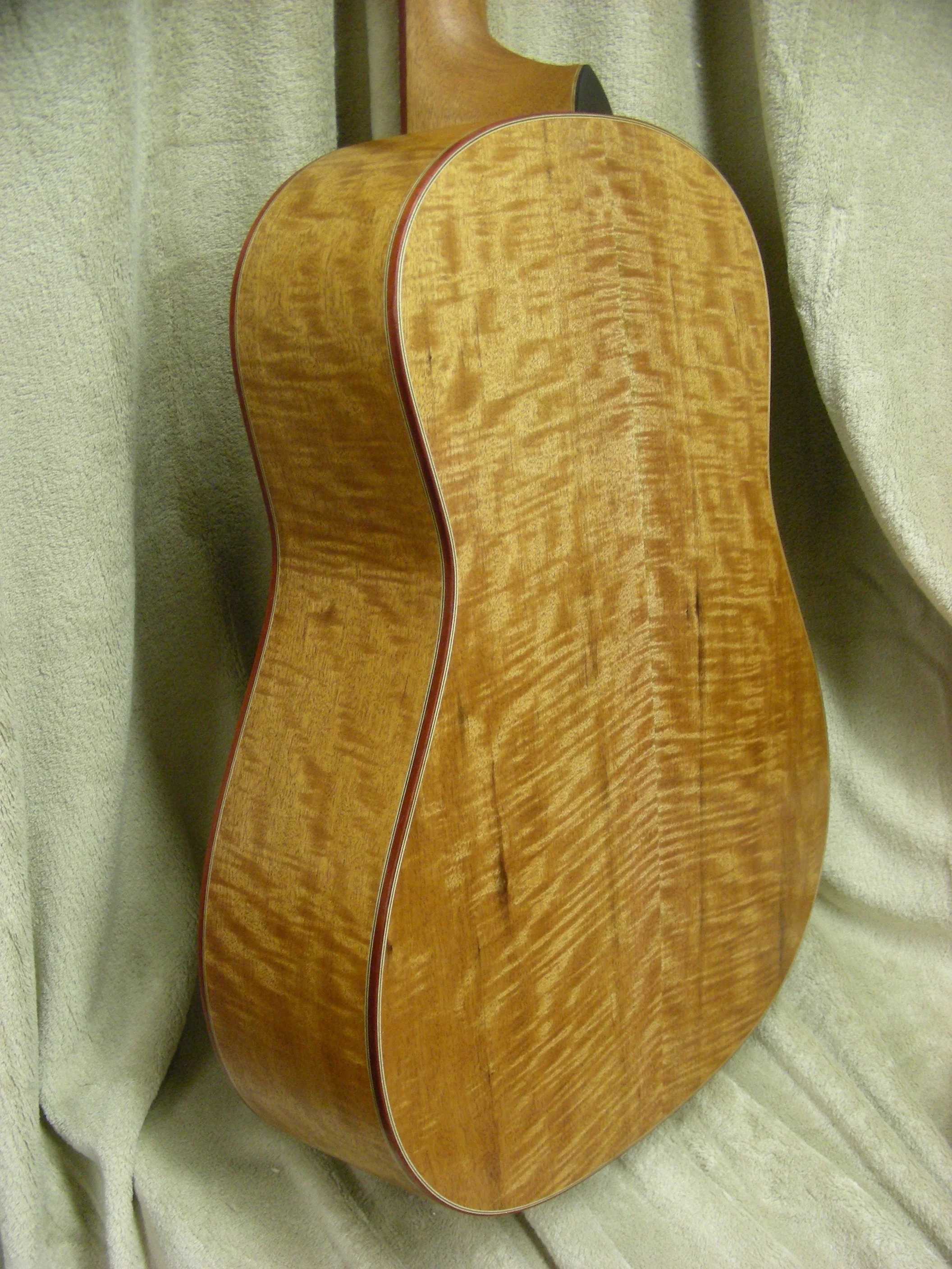 Pictured Barnburner features a 3A Sitka spruce top with abalone rosette, Padauk fingerboard, bridge and binding, Tor-Tis pickguard, curly maple back, sides and neck, bone nut, saddle and bridge pins. *Price as pictured $4,405